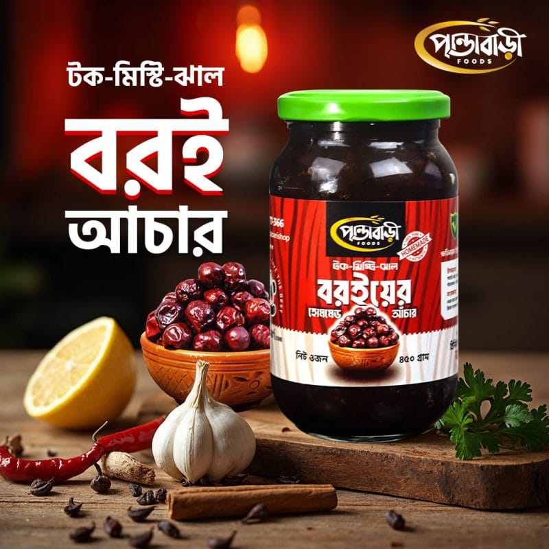 -13%Product Code: P15❤️🔥 এই যে ছোট্ট বরইগুলো, টক-ঝাল-মিস্টি মশলায় মাখামাখি এক অদ্ভুত মজাদার আচার। এক চামচ মুখে দিলেই বুঝবেন কেন সবাই এর পিছনে পাগল। 🌟 একবার খাওয়া শুরু করলে থামতেই চাইবেন না। ভাত-ডাল, খিচুড়ি, যা-ই খান না কেন, এটা দিয়ে খেলে স্বাদ দ্বিগুণ।