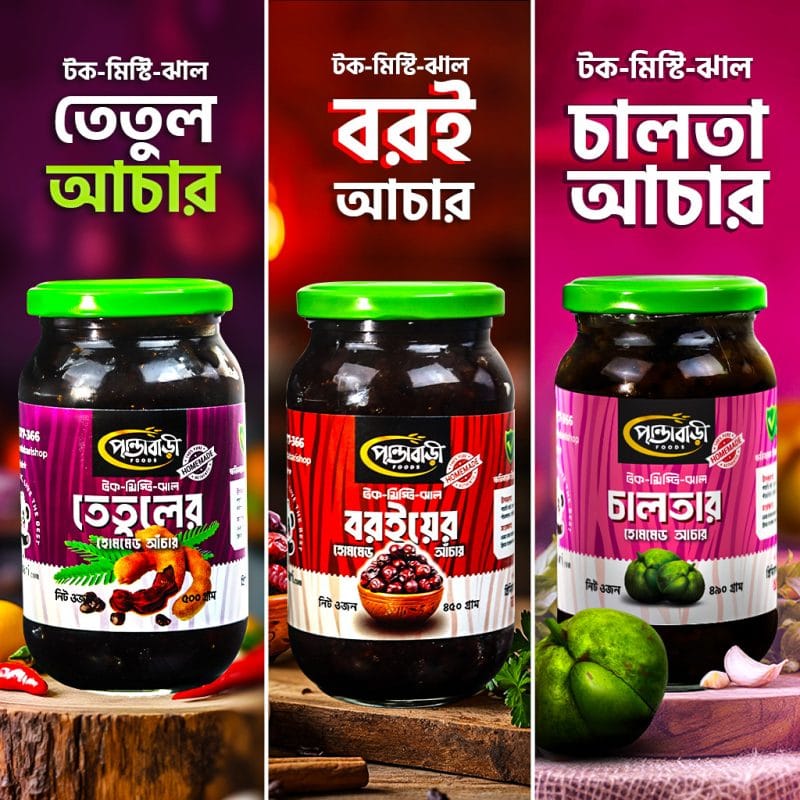 ❤️‍🔥 তেঁতুল, বরই, এবং চালতার তিনটি জনপ্রিয় আঁচারের এই কম্বো, স্বাদের এক নতুন দুনিয়া !! প্রতিটি আচারের টক, মিষ্টি, ও ঝালের মোহনীয় স্বাদ আপনাকে মন্ত্রমুগ্ধ করে রাখবে। তেঁতুলের টক-মিস্ট-ঝাল স্বাদ মুখে রসের ঝর্ণা তৈরি করে, বরইয়ের মিষ্টি-টক স্বাদ আর গন্ধ নতুন মাত্রা যোগ করে, আর চালতার নিজস্ব স্বাদের কথা না হয় নাই বললাম। 🔥 সব মিলে আপনি কখন যে এই আচারগুলোর স্বাদের প্রেমে হারিয়ে যাবেন নিজেই টের পাবেন না। তাই এই কম্বো কোনভাবেই মিস করা চলবে না!